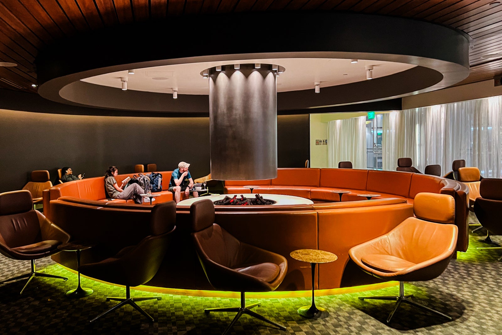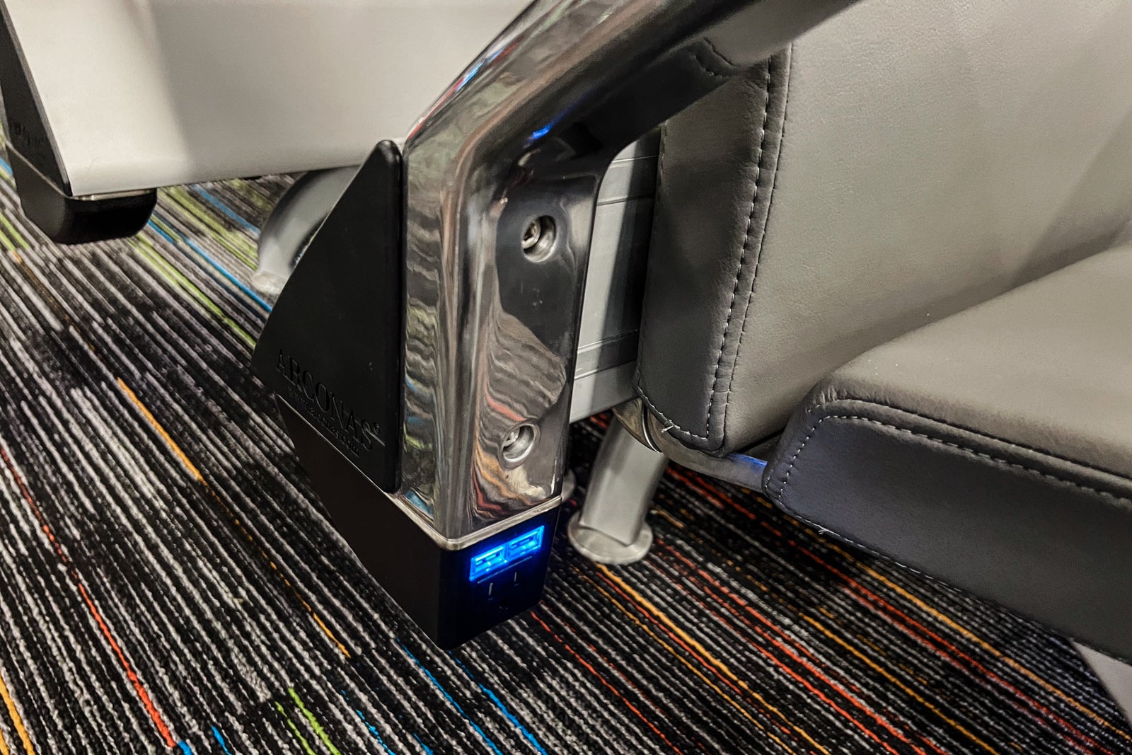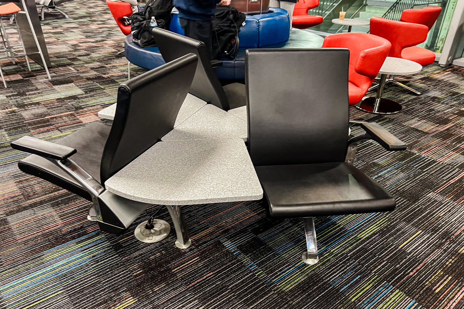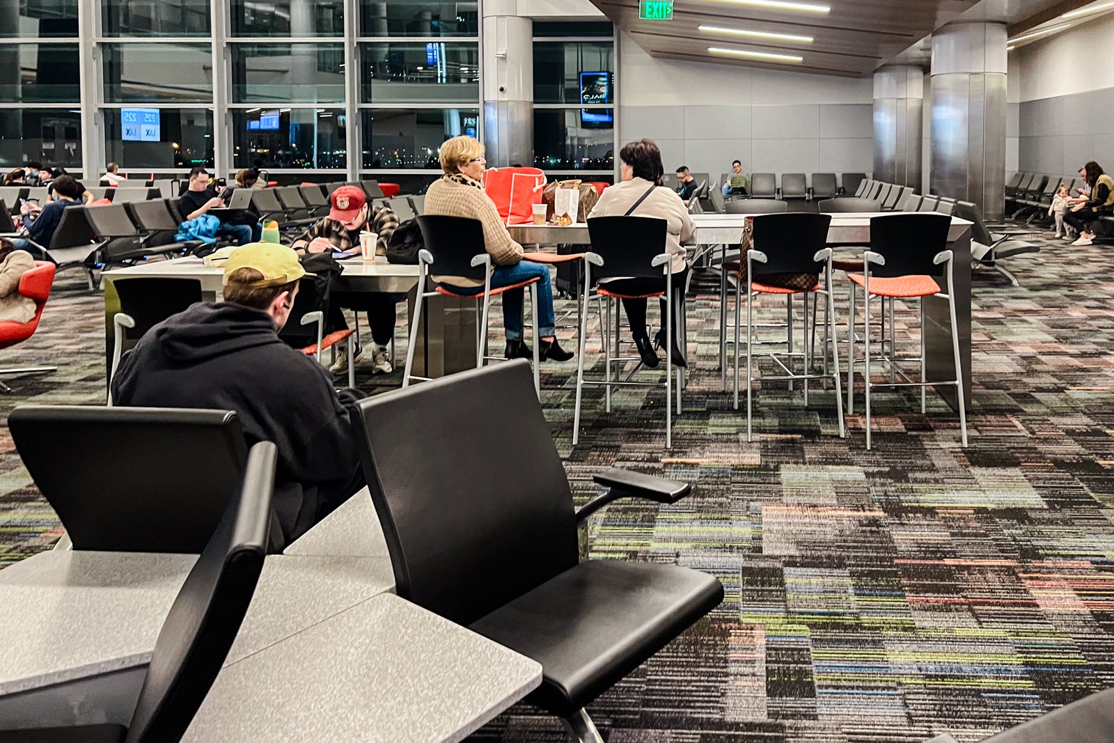 There have been tons of of seats, dozens of which have been empty, so it by no means felt cramped. Two massive tables, every with seating for eight, had loads of retailers, and there have been free charging plugs at many of the seats within the boarding space.
