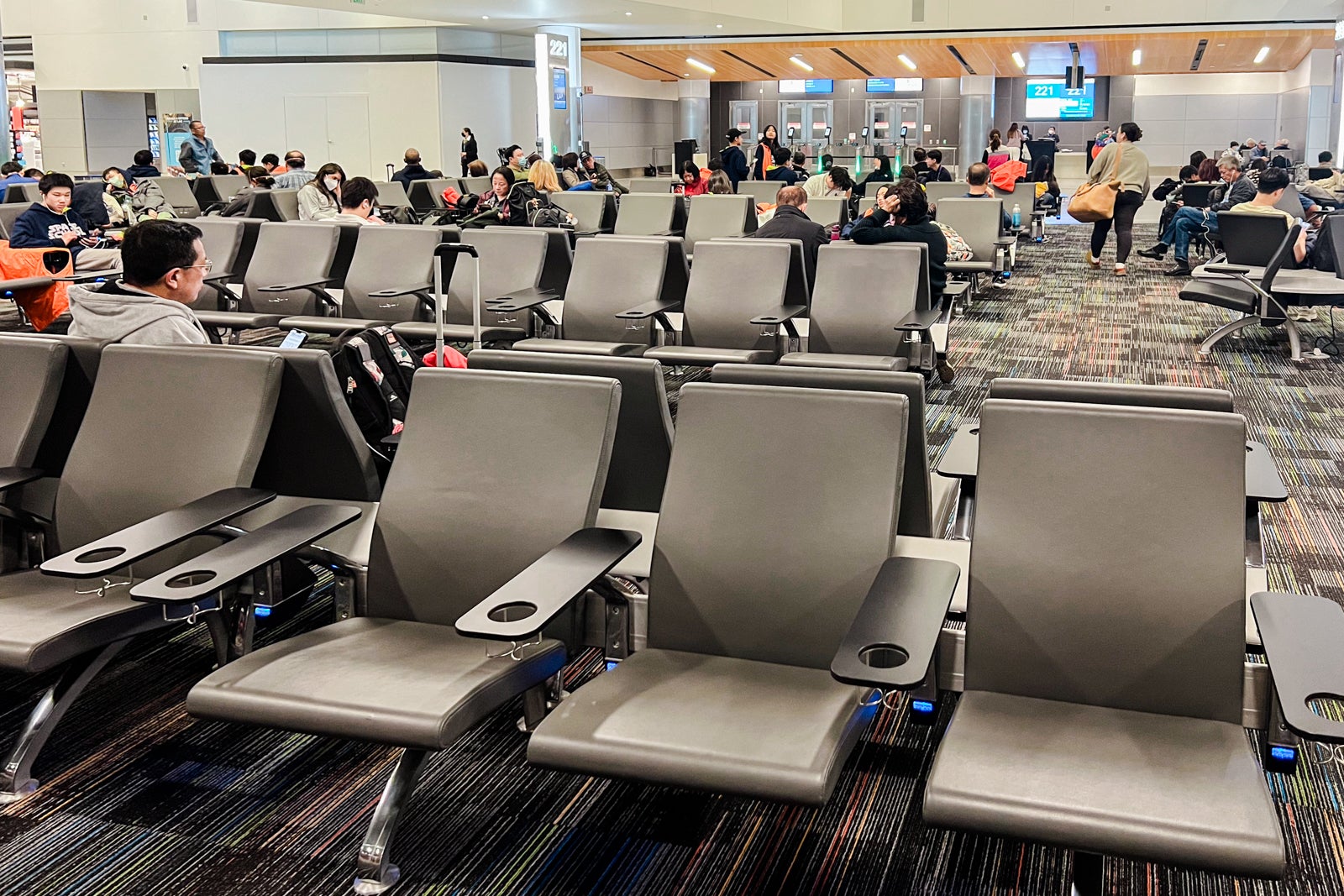 The boarding space was massive and fashionable. We have been leaving from Gate 221. The enormous seating space served Gate 221 and one other gate subsequent door (Gate 225).