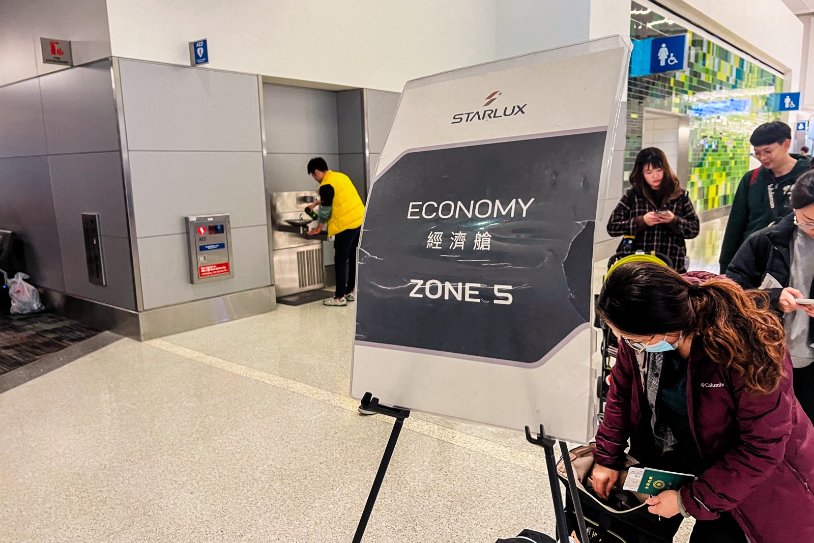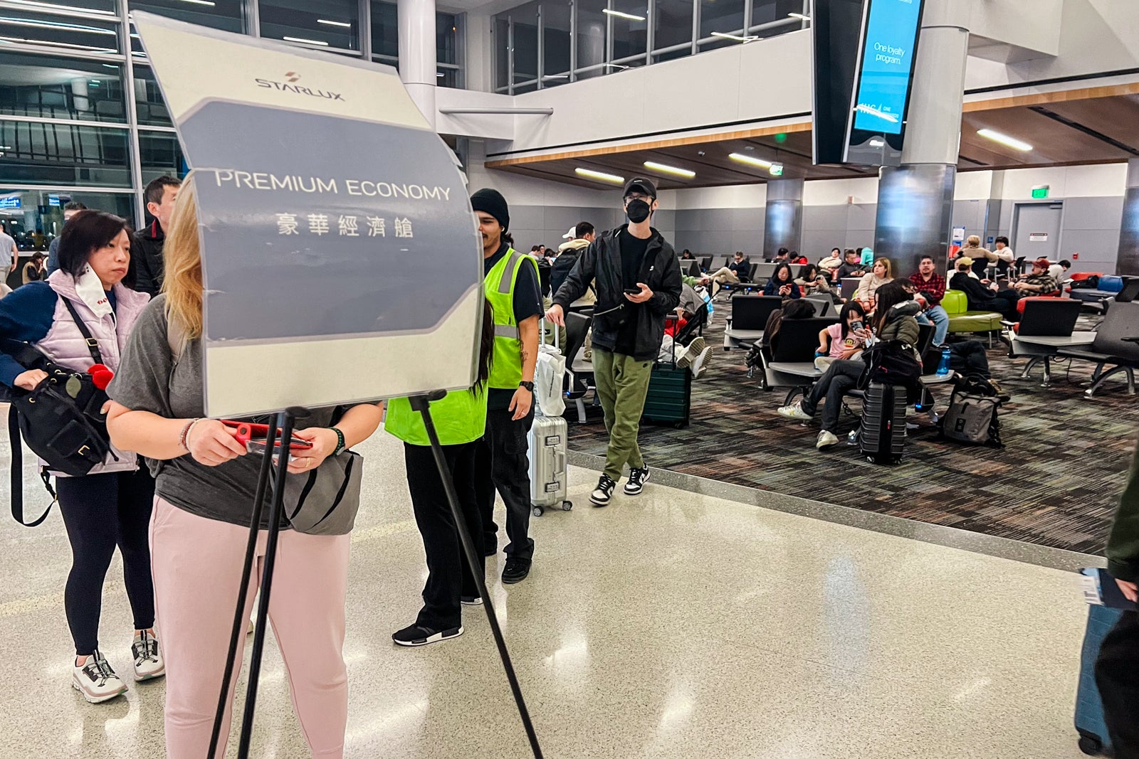 There are technically eight boarding teams for Starlux, although they solely have six numbered spots. Starlux brokers put out cardboard indicators within the boarding space for every group. I’d by no means seen that system earlier than, however it appeared to work nicely. You’ll solely be capable of do that with massive boarding gates like these on this terminal.