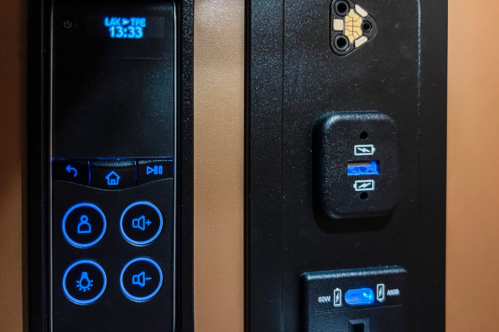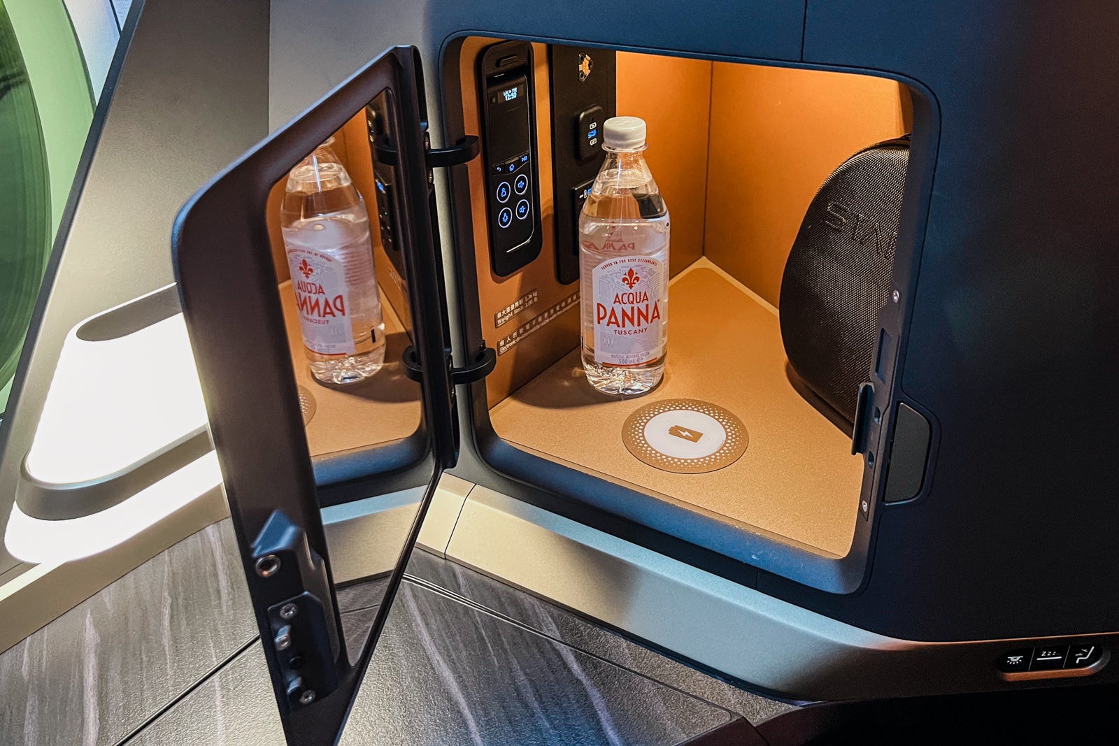 An important storage closet at my seat held quite a bit through the flight. It even had a charging pad, although I couldn’t get my cellphone to cost.
