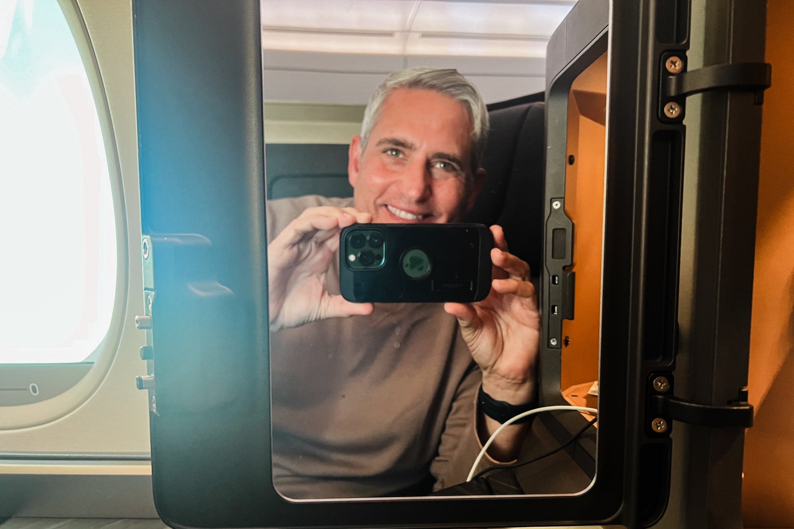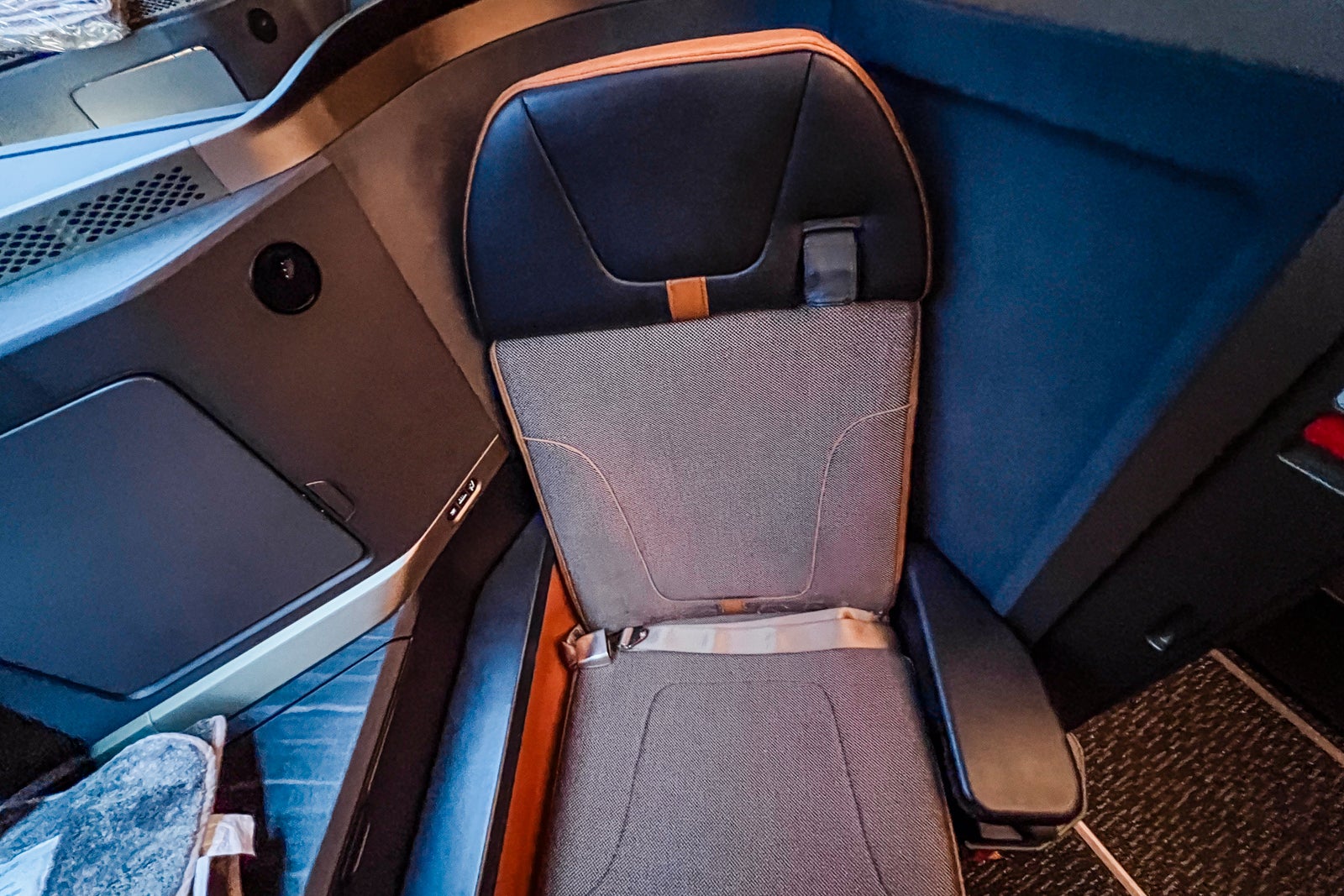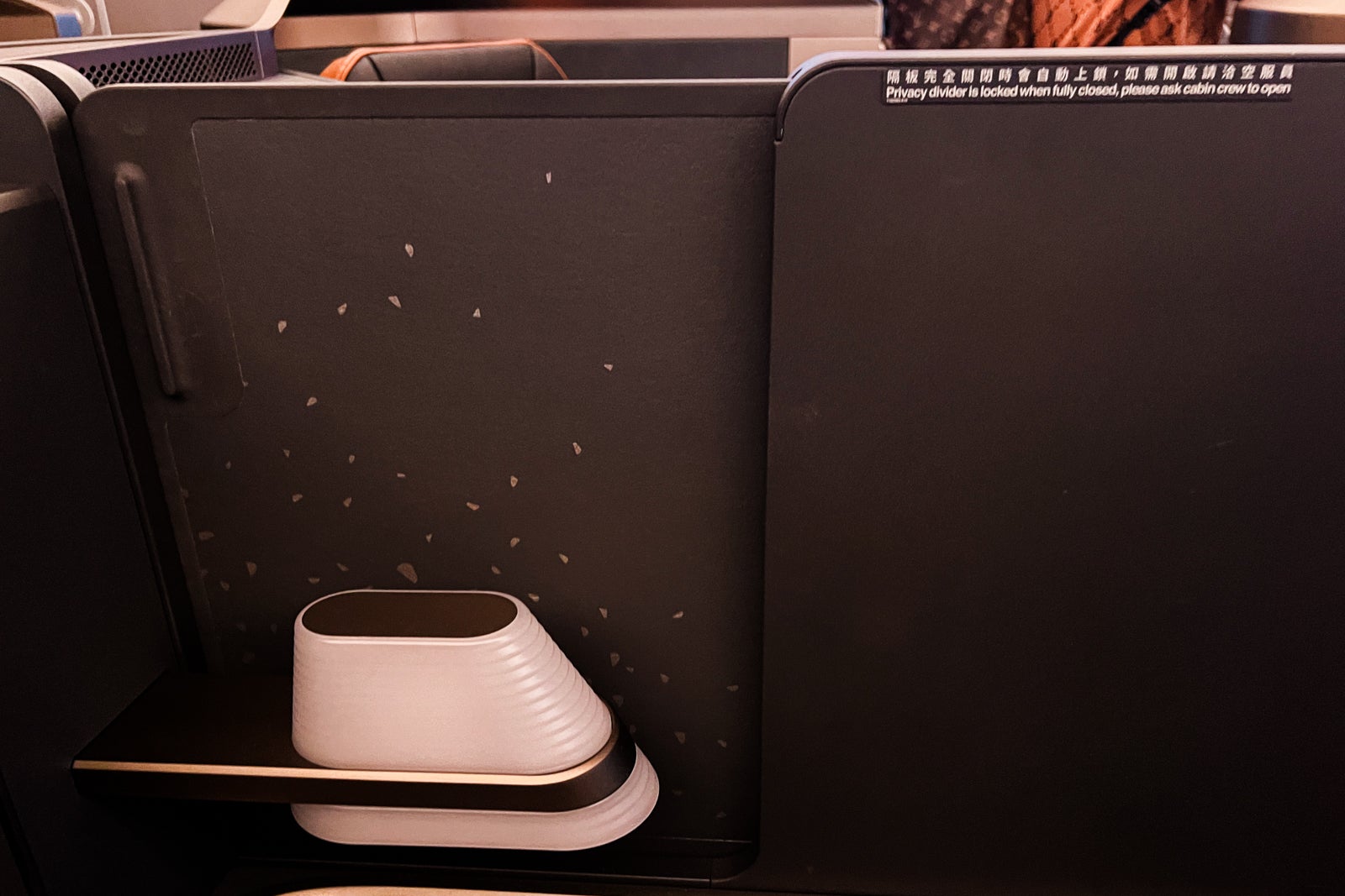 The Starlux seat additionally had a sliding door for added privateness. I wanted a flight attendant to indicate me open and shut it because it had a considerably hidden button that you just wanted to unlatch to open the door.
