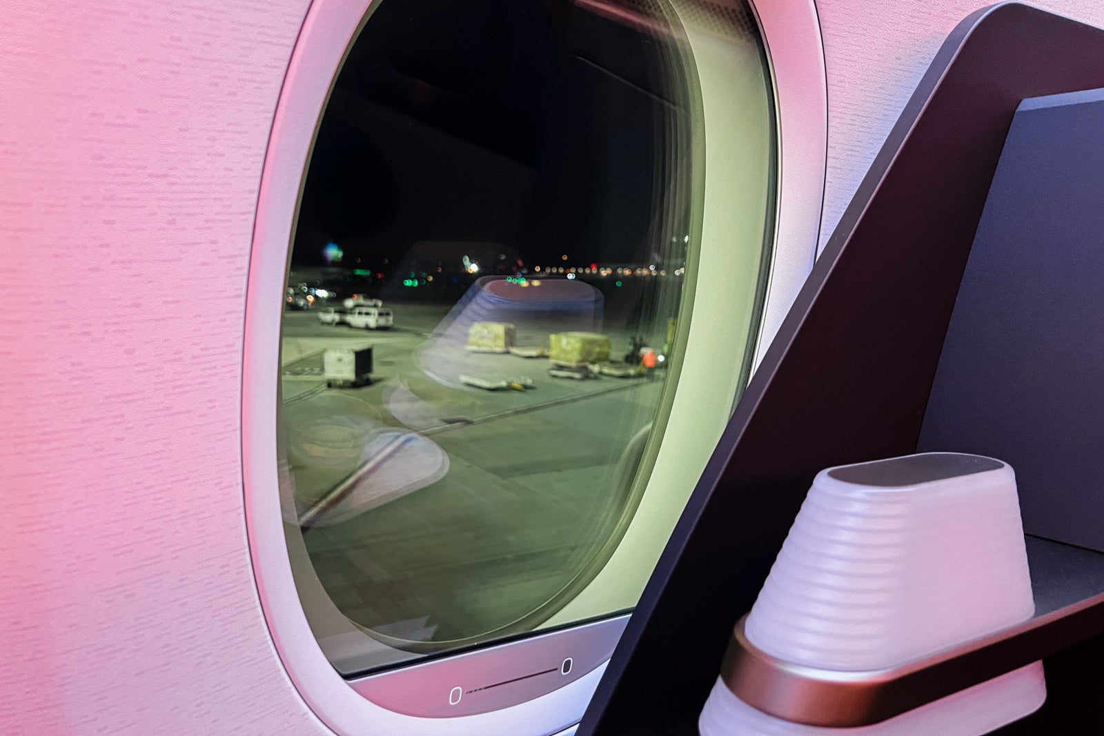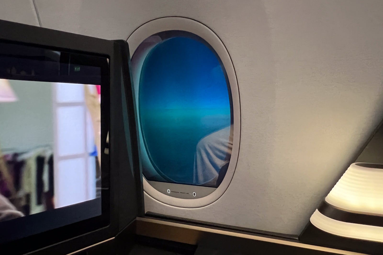 One factor to concentrate on is that most of the seats’ home windows have partially obstructed views. Solely seats 5K and 5A had a full unobstructed window. The cabin additionally had electronically dimmable home windows. Nevertheless, I discovered the sliding controllers have been locked for many of the flight, they usually have been unresponsive after I did have some management over them.