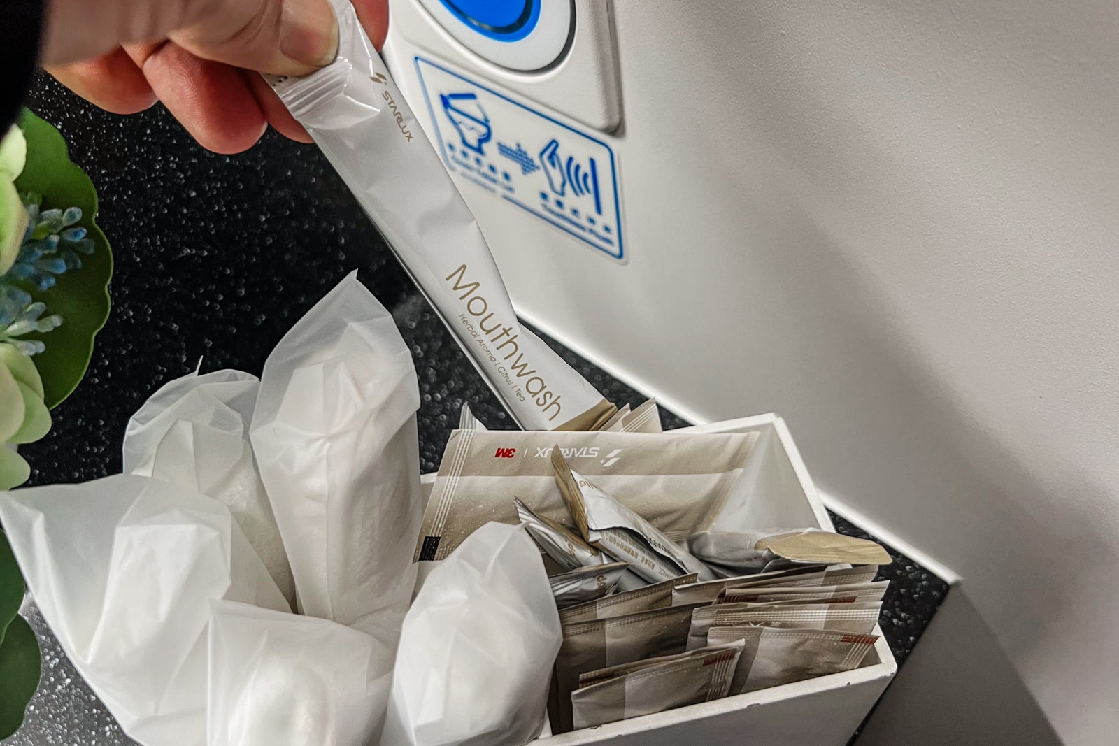 The amenity package contained an eye fixed masks and earplugs, in addition to skinny socks, a miniature toothbrush and toothpaste, and a comb. Moisturizer, lip balm and a face mist have been by Huygens.