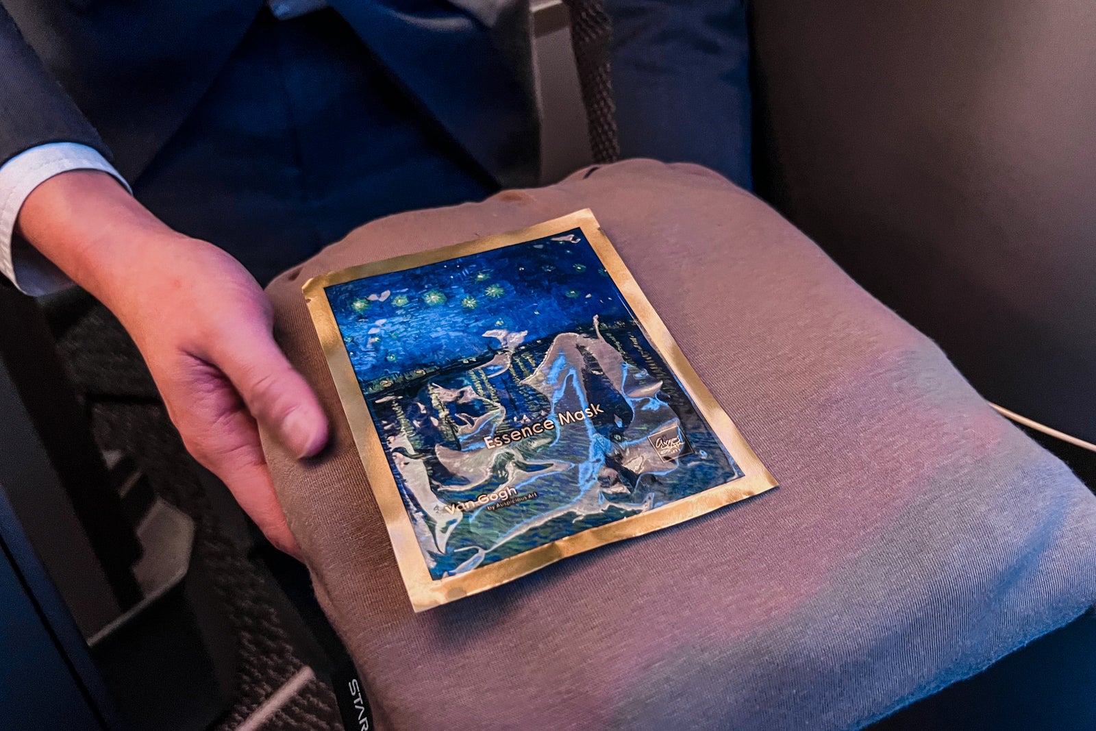 Pajamas have been additionally offered for this in a single day flight. Starlux is without doubt one of the few airways nonetheless handing out pajamas to their business-class passengers. They have been cute, camel coloured and offered a pleasant possibility for sleepwear, although they barely match. Regardless of being a bit tight for me — the most important dimension accessible was a big — I wore them anyway. They have been handed out together with a moisturizing masks.