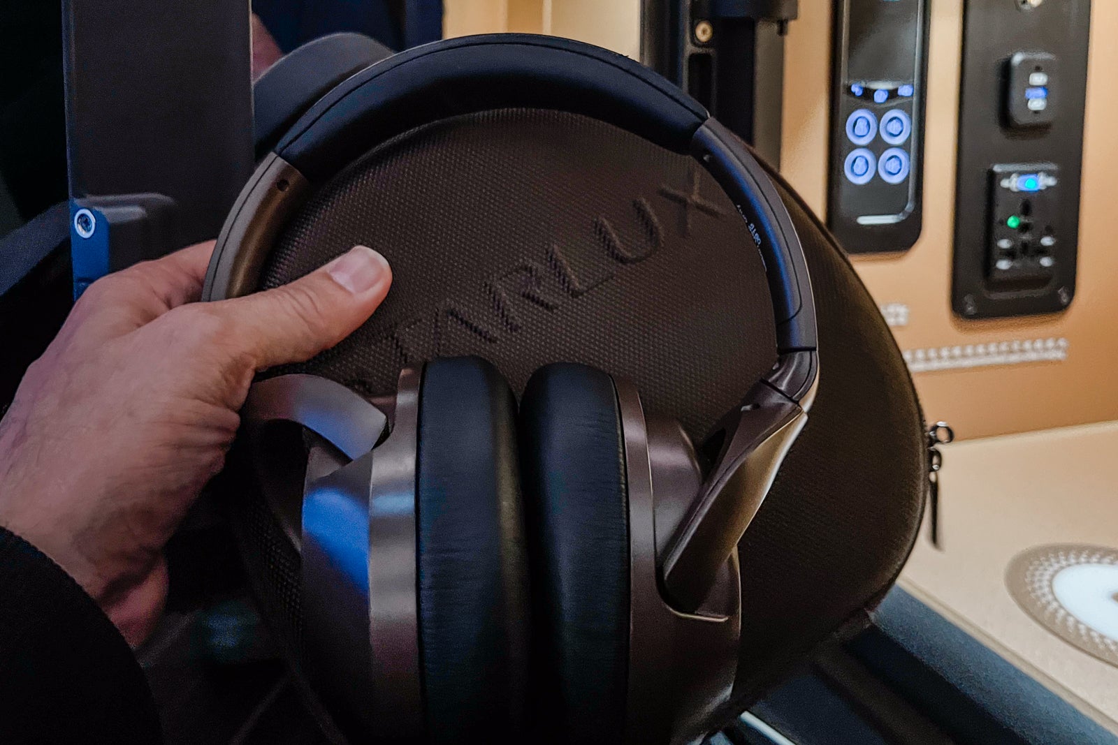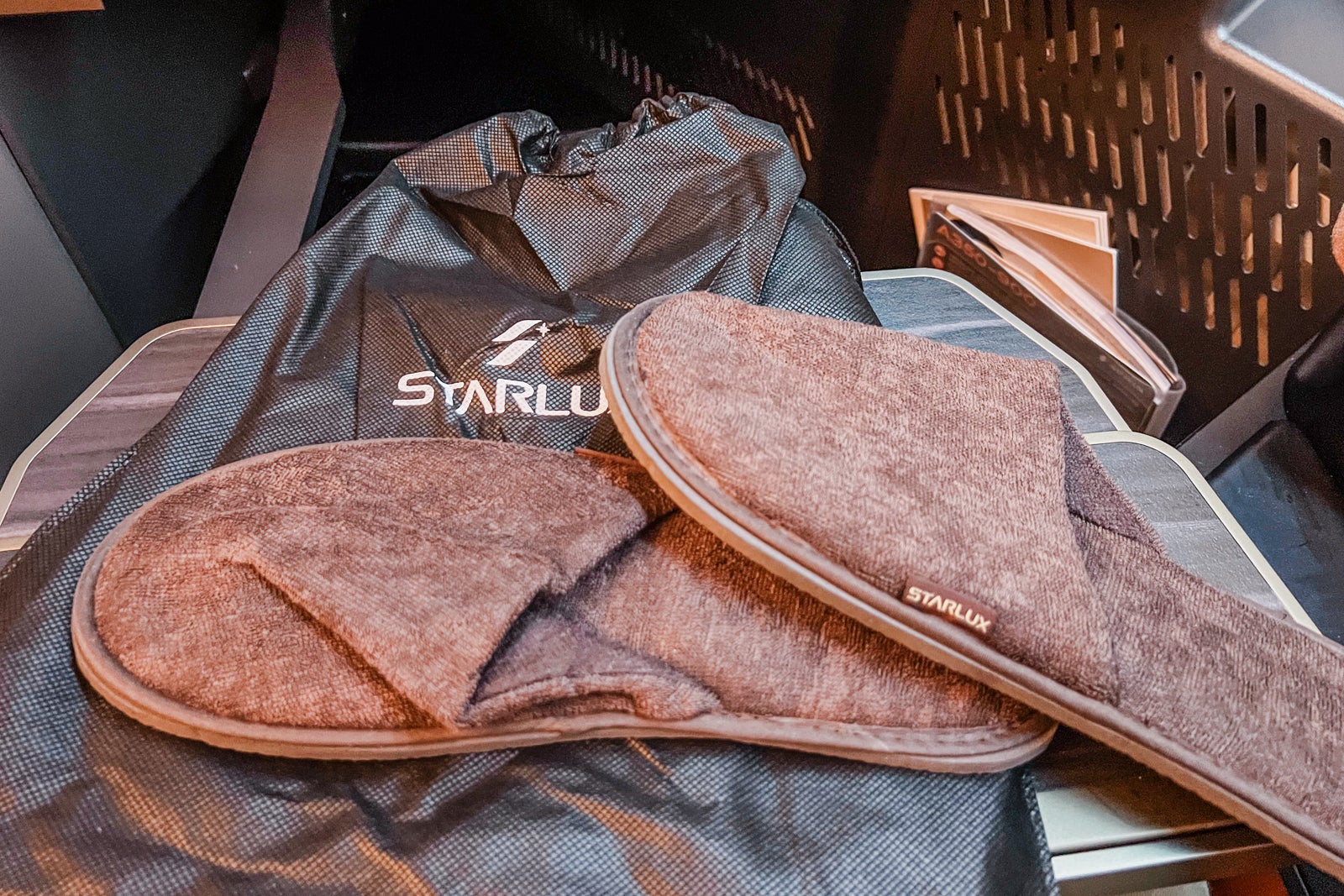 All business-class passengers have been supplied with noise-canceling headphones branded as Starlux. I discovered them comfy sufficient to put on for hours at a time, they usually did an honest job of blocking out noise within the cabin. Sound high quality was additionally good, although not so good as some Bose techniques I’ve utilized in different business-class cabins.