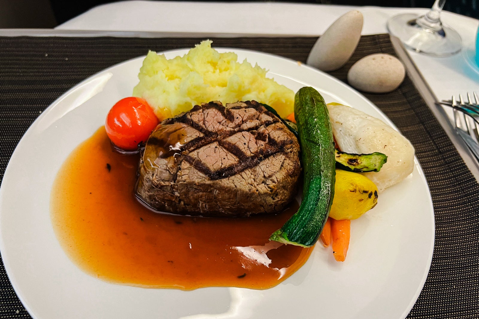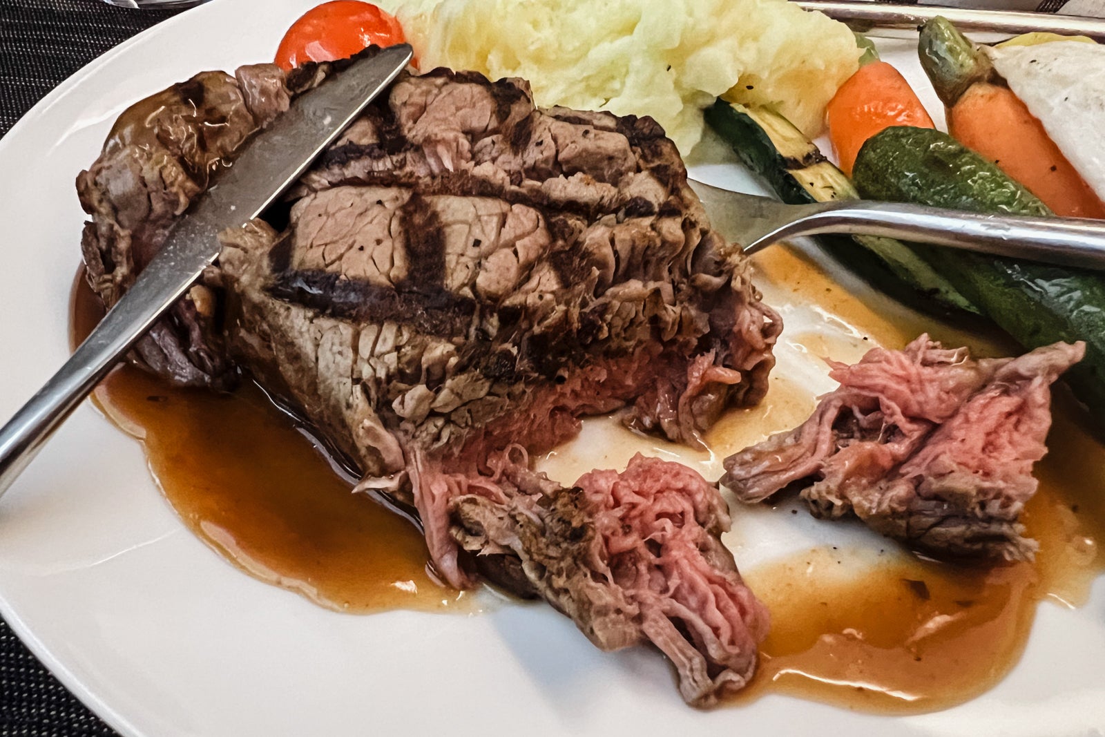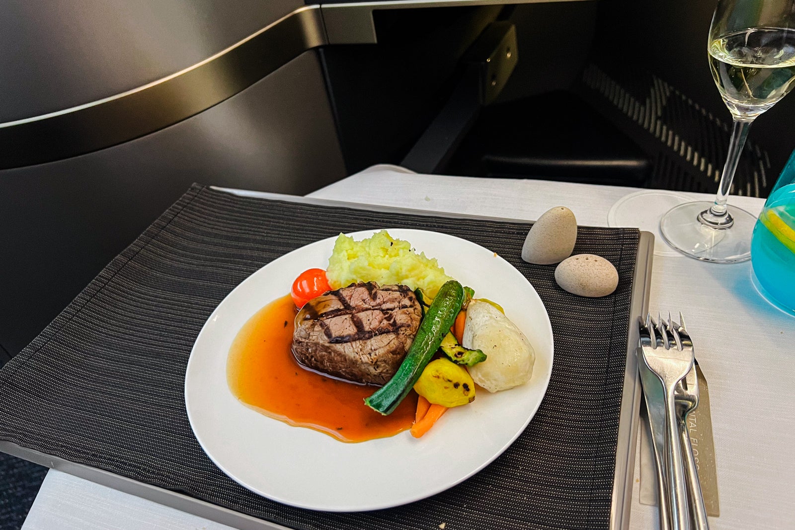 I ordered the meat tenderloin as my major course, and the steak got here shortly after the flight attendants cleared the appetizers. The steak regarded a bit undercooked at first look — a rarity within the air — however it was very good and the most effective steak I’ve had throughout a flight. It was filled with taste.