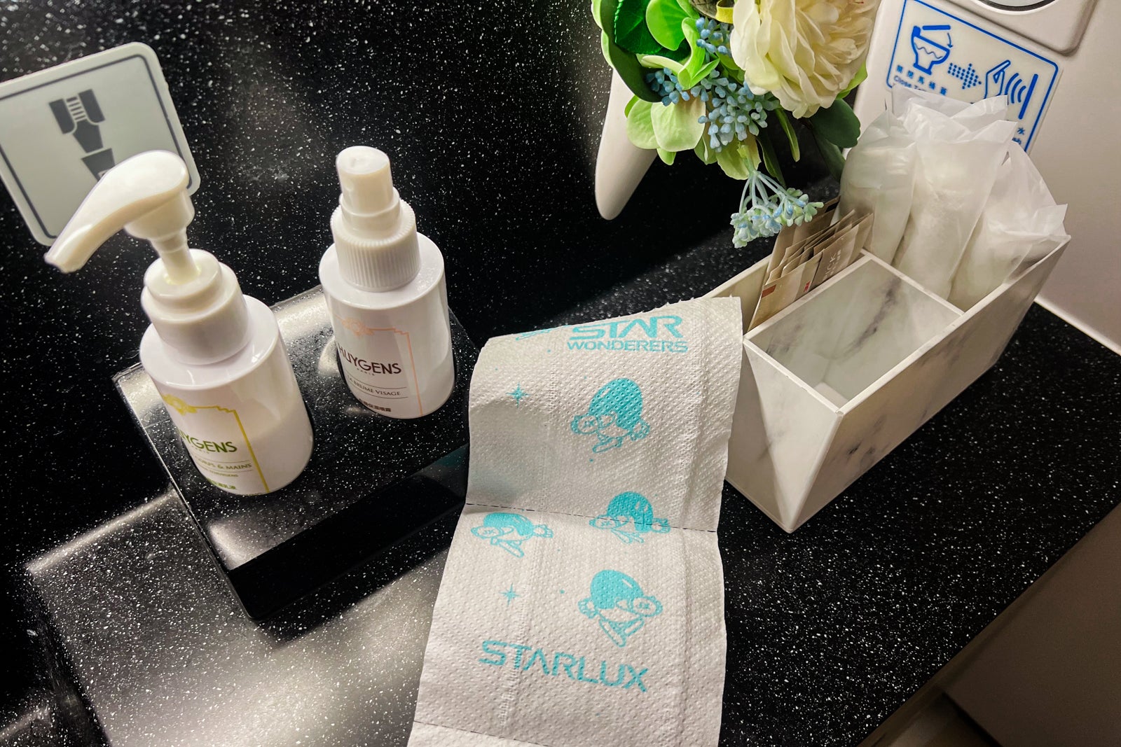 Some of the fascinating issues in regards to the loos was the Starlux-branded bathroom paper with the phrase “star wonderers” printed on the tissue together with an area character. It was quirky however cute.