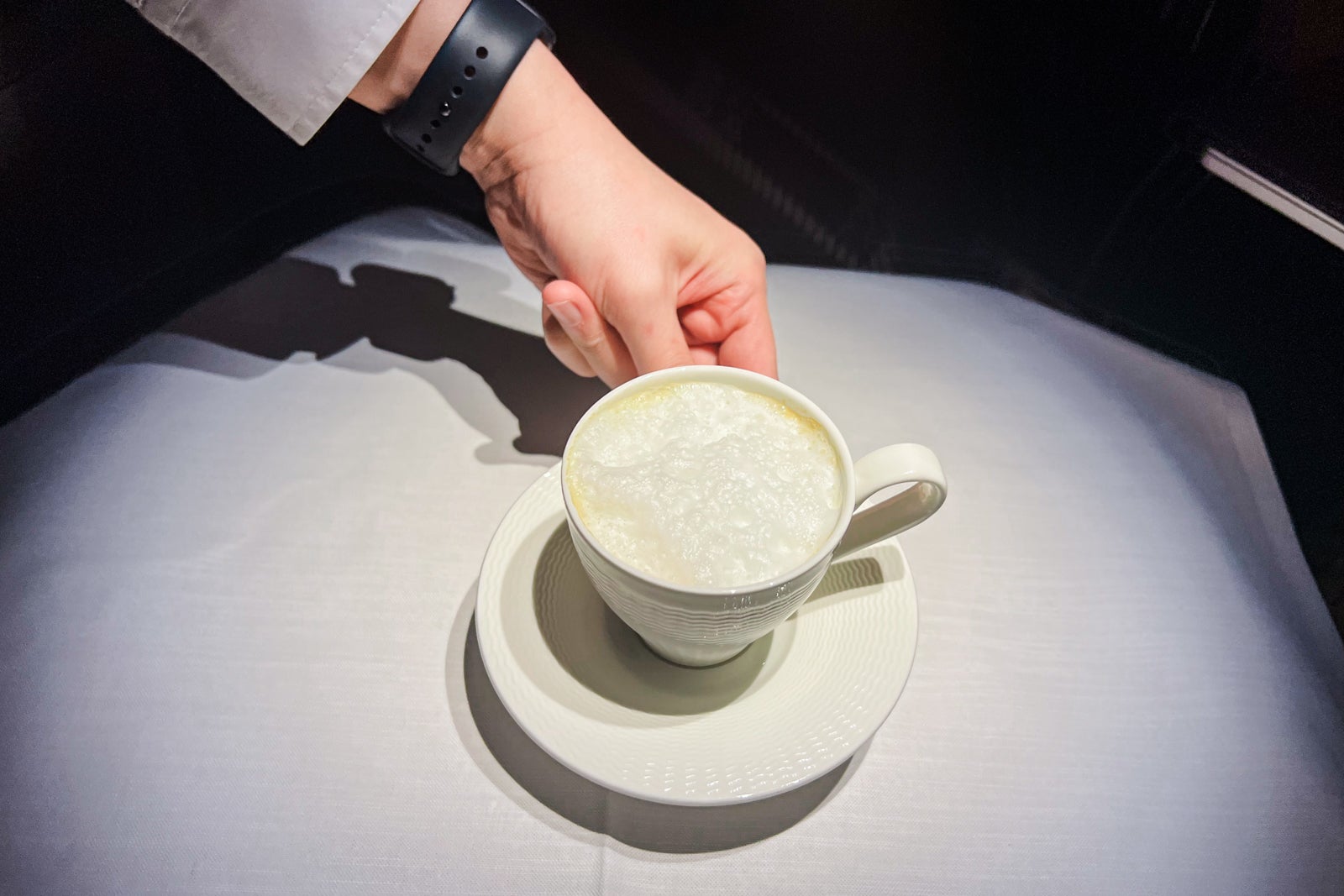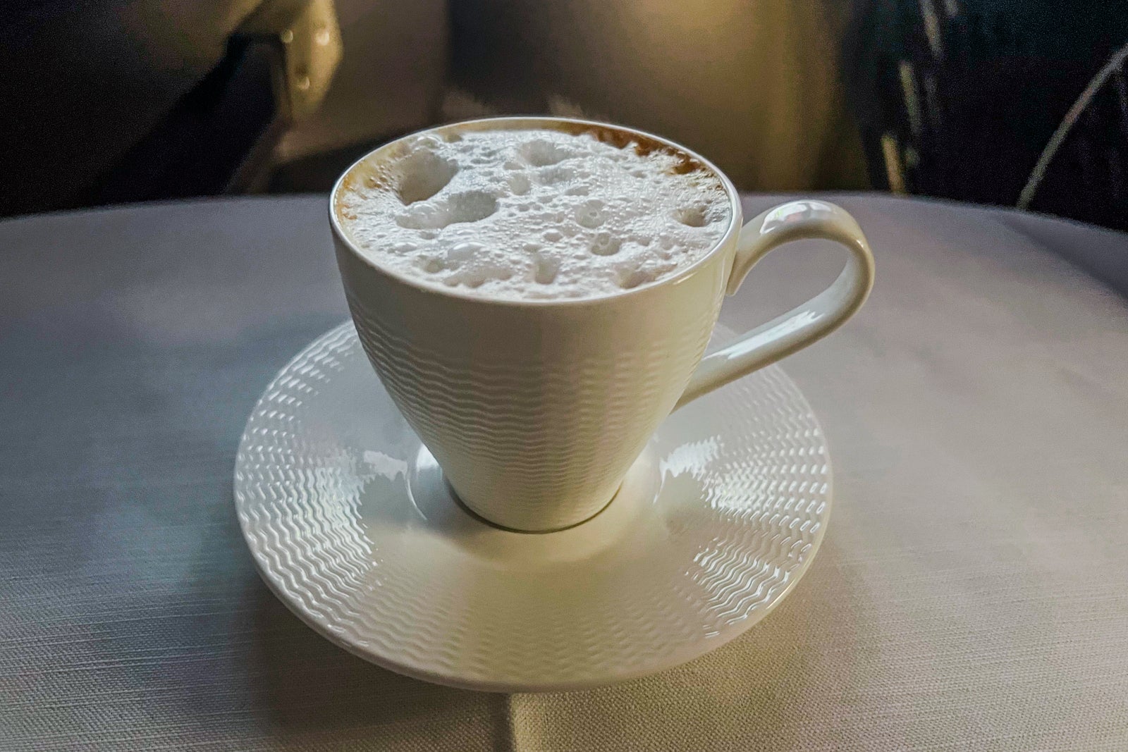 About two and a half hours earlier than arrival, flight attendants got here by with one other cool towel and supplied a breakfast wake-up peach juice. It was scrumptious. Not lengthy after, I obtained a cappuccino. It was so good that I requested for a second and a 3rd. There’s nothing like combating jet lag with caffeine.