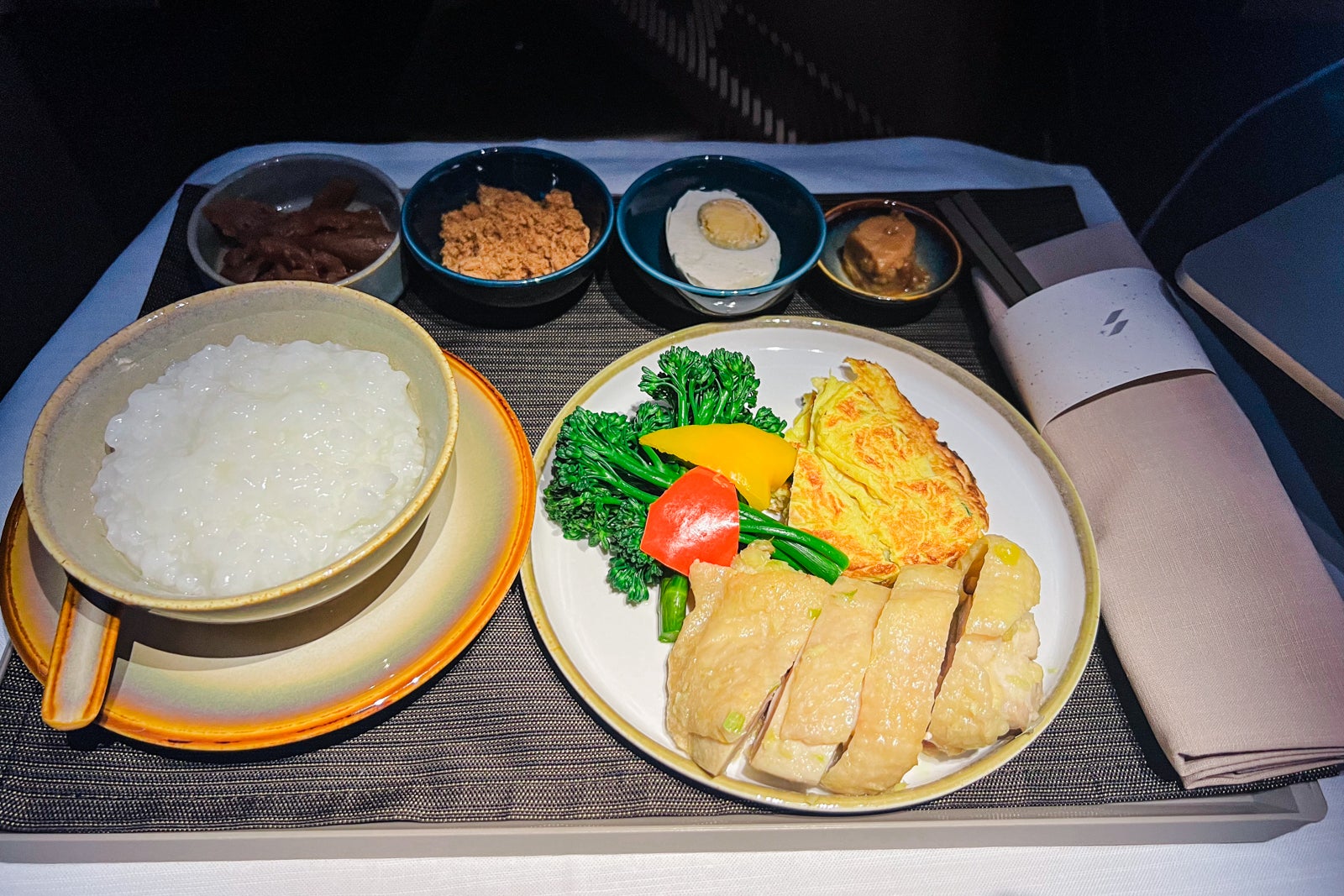 The flight attendant additionally confirmed me the Asian breakfast of congee and let me snap a photograph. As if that wasn’t sufficient, she additionally introduced out extra espresso for me and one other fruit plate.