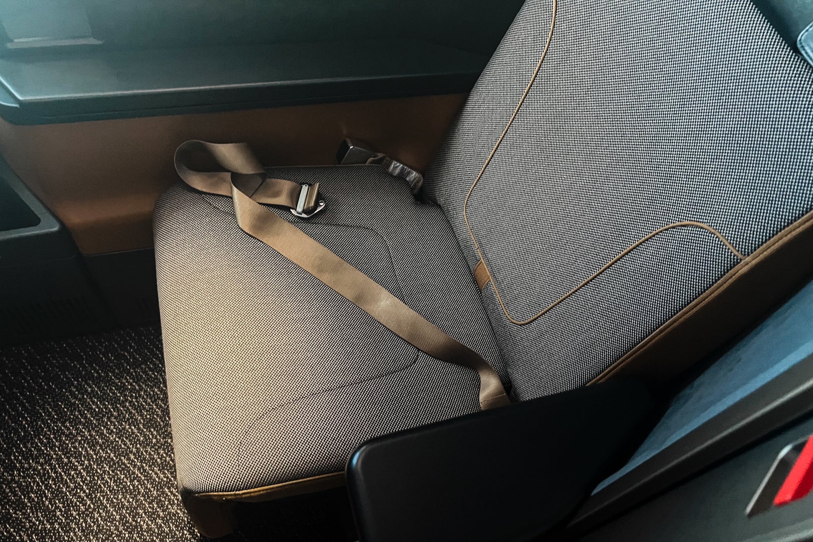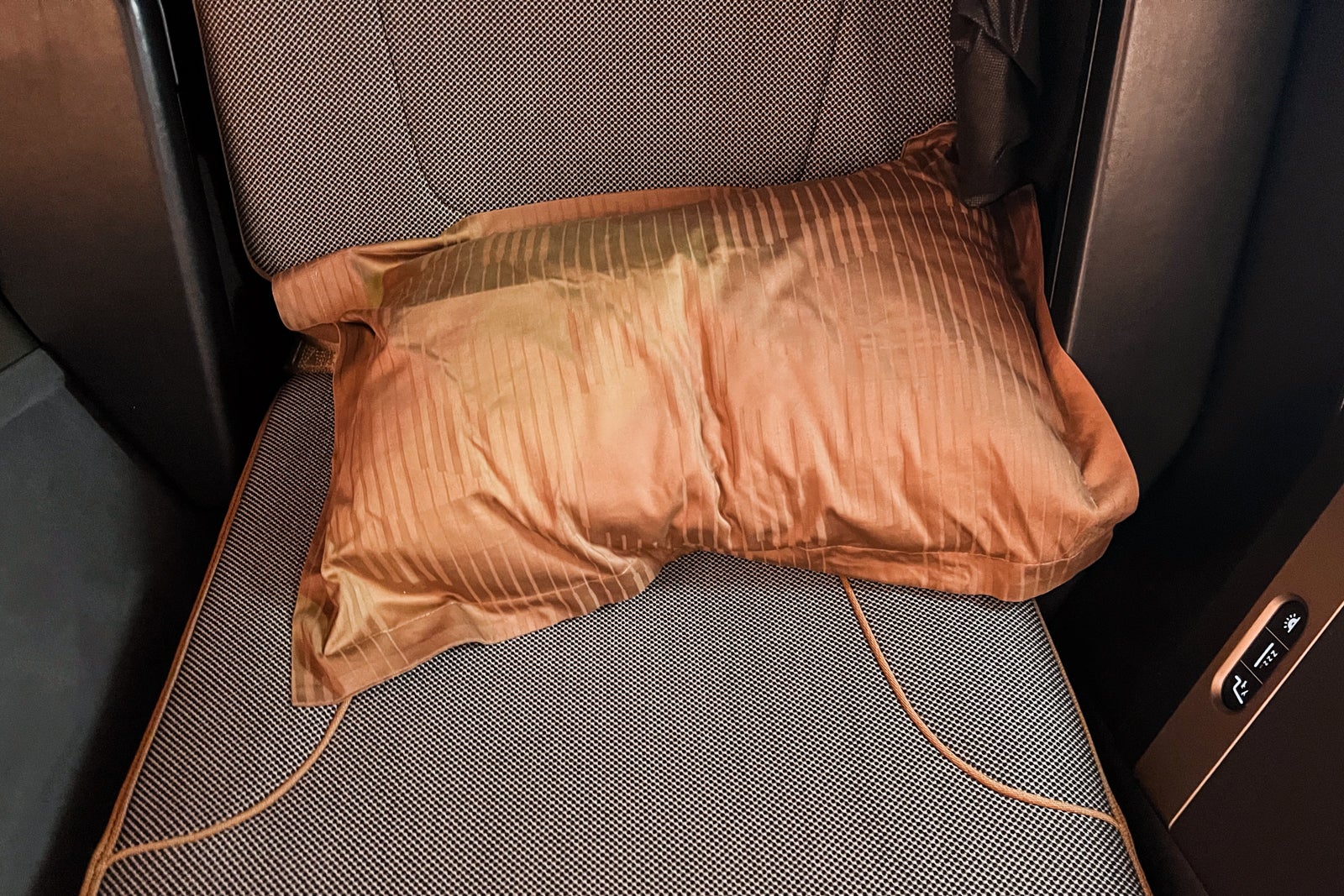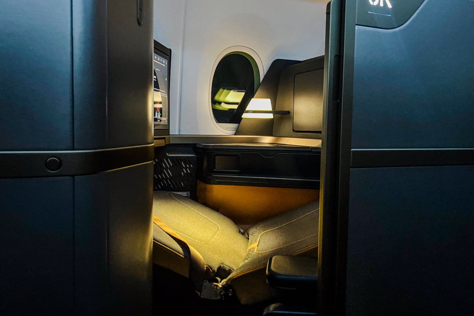 I beloved seat 6K. It was nicely padded and extensive sufficient that I by no means felt cramped. The footwell narrowed on the toes, however not like some business-class seats I’ve been in, it didn’t really feel too tight whereas I slept. I measured it at 14 inches at its narrowest.