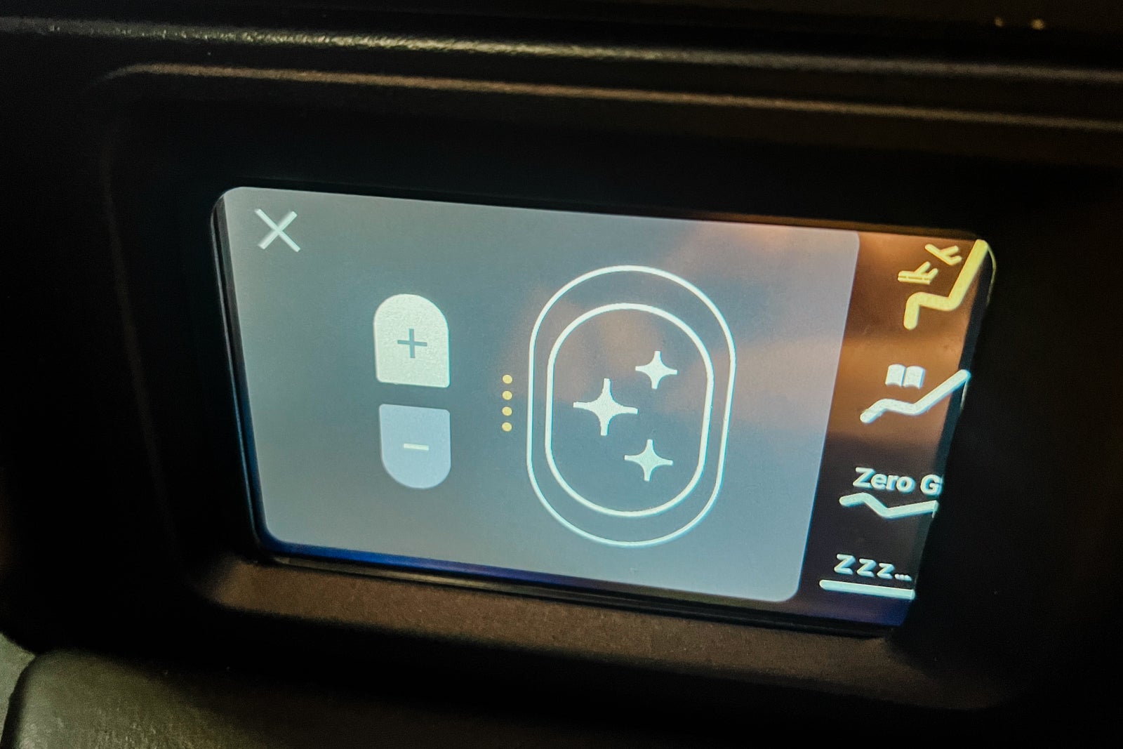 The dimmable aspect lamps at each seat have been an aesthetic contact. They have been managed by a 4.7-inch touchscreen panel on the armrest that additionally allowed for altering the seat place.