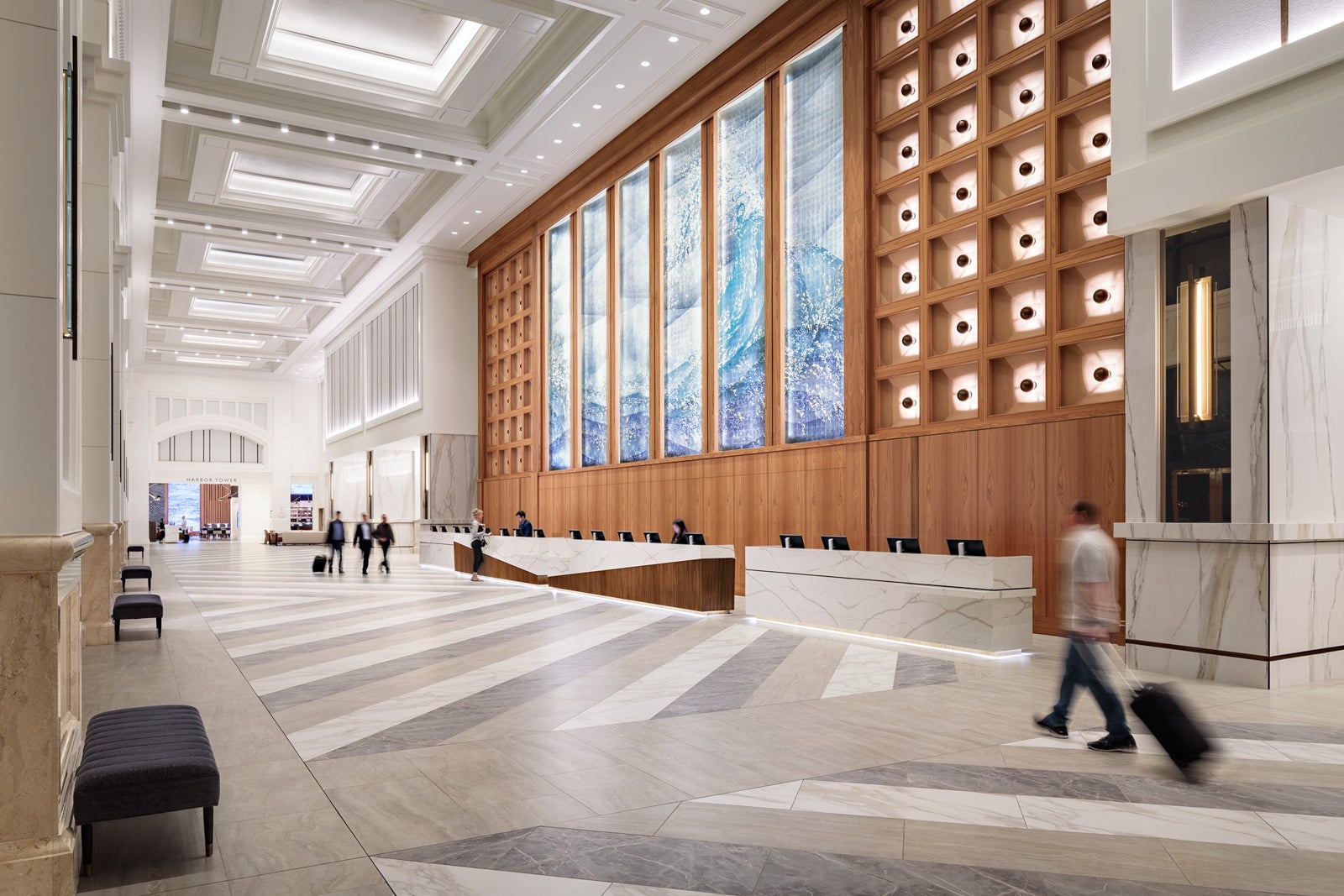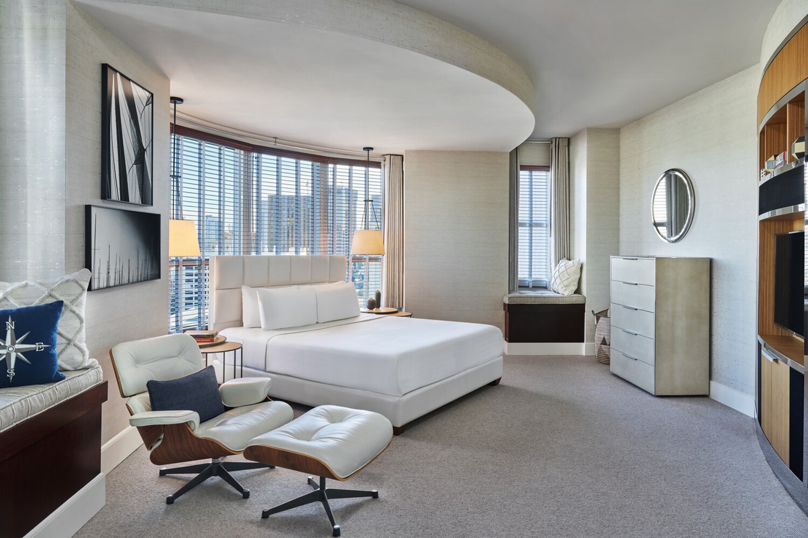 Visitor rooms are giant and shiny, although considerably spartan, with floor-to-ceiling home windows overlooking the harbor and skyline, crisp white linens and a taupe-and-blue coloration palette within the different comfortable furnishings. Giant bogs have half-glassed walk-in showers stocked with citrusy Agraria merchandise.